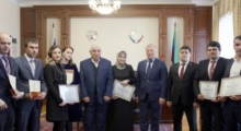 За высокие результаты, показанные в ходе проведения олимпиады, триумфаторов поощрили памятными именными часами Главы РД и наградили Почетными грамотами Правительства РД. Магомед Халитов – Председатель Конституционного Суда РД, лично вручил дипломы.