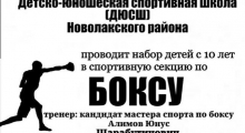 Информируем Вас о том, что в ДЮСШ села Новолакское Новолакского района объявлен набор детей от 10 лет в спортивную секцию по боксу. За более подробной информацией вы можете обратиться по указанному номеру или ,непосредственно, посетить саму спортивную школу. Телефон для справок: 8 (988) 697 19 86